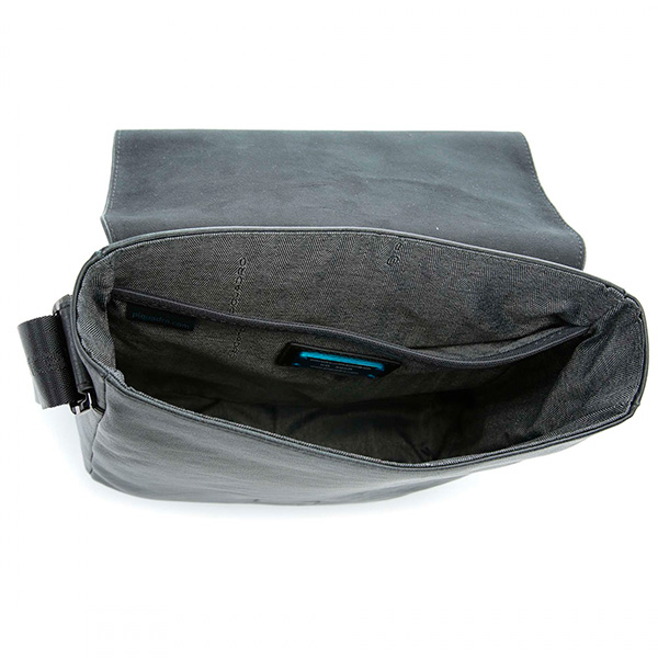 Кожаная сумка через плечо из флагманской коллекции Piquadro Black Square. Сумка имеет одно основное отделение, закрывающееся на магнитный клапан. Внутри расположен отсек для 10,5 дюймового планшета и кармашки для письменных принадлежностей. Благодаря глубине сумки в 7 см, в нее с легкостью поместятся все необходимые в повседневности вещи и ее не будет "распирать".
