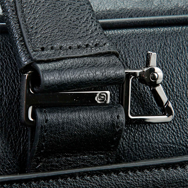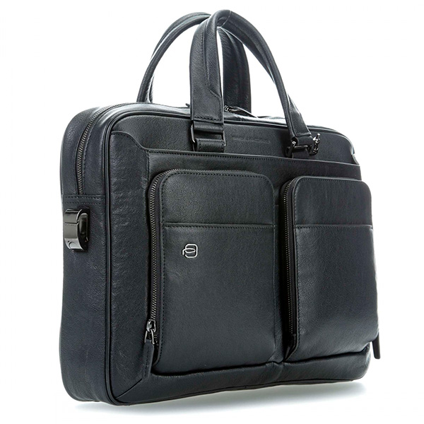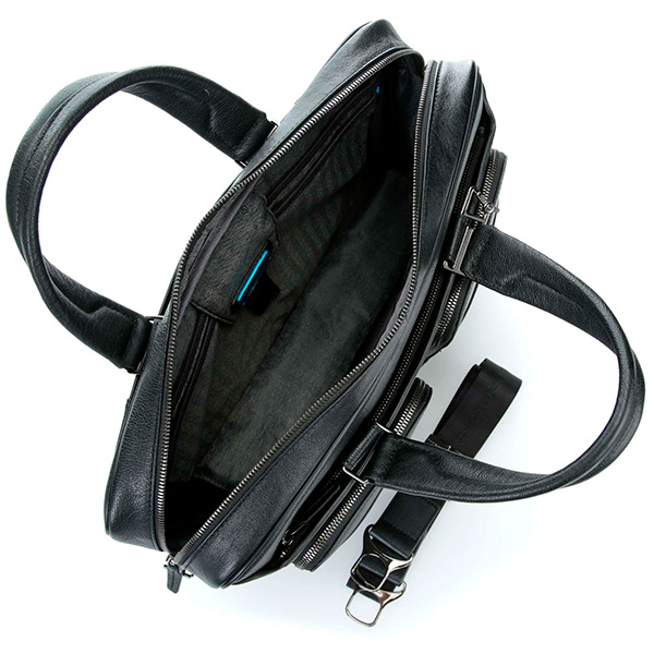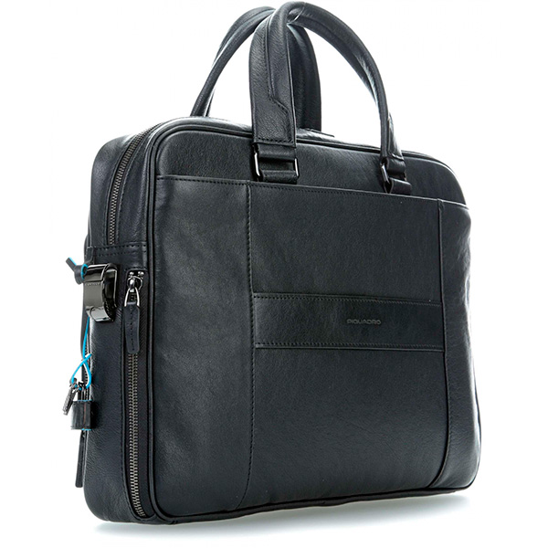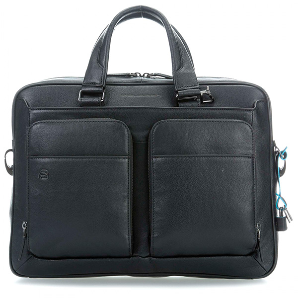 Мужская кожаная сумка черного цвета с одним отделением, отсеком под 15 дюймовый ноутбук и планшет, внутренними и внешними карманами на молнии, а также плечевым ремнем. Выполнена из телячьей мелкозернистой кожи с черненой фурнитурой. Новый цвет в коллекции Piquadro Black Square.