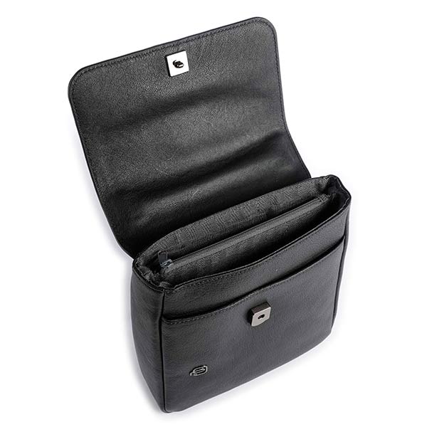 Новая модель кожаной сумки через плечо из коллекции Piquadro Black Square. К особенностям модели можно отнести скрытую ручку для ношения в руке, а также крепления для плечевого ремня, позволяющие носить сумку, как через плечо, так и за спиной. Оптимальный размер на каждый день!