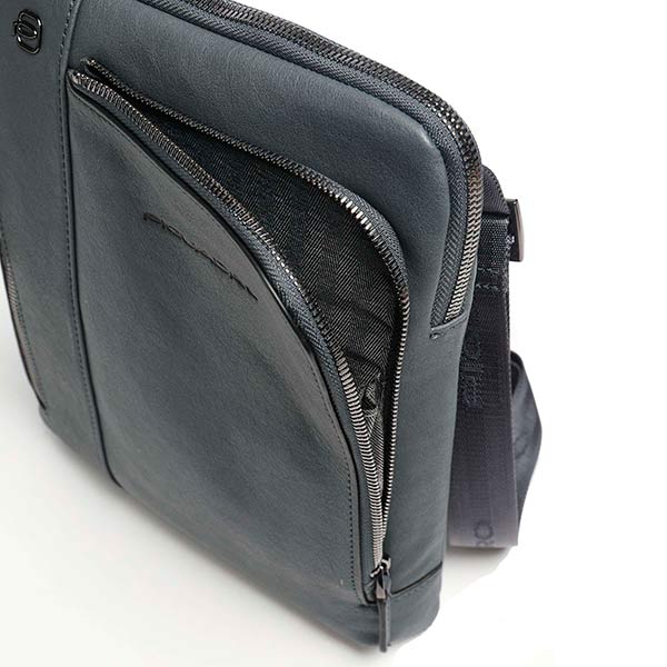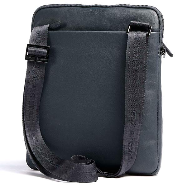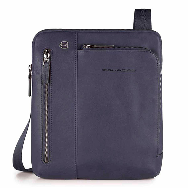 Кожаная сумка синего цвета с плечевым ремнем из коллекции Piquadro Blue Square. Имеет одно отделение..