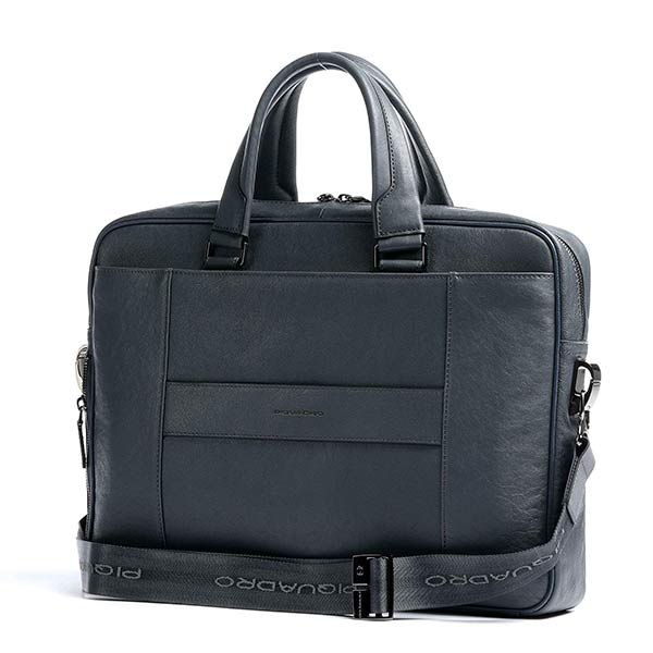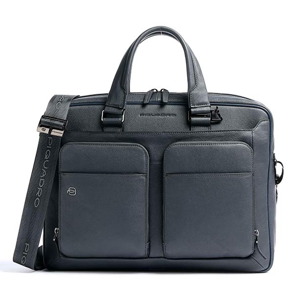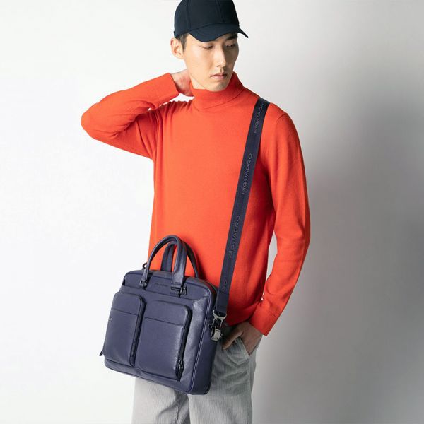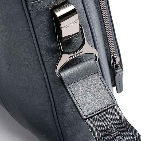 Кожаная сумка синего цвета с плечевым ремнем из коллекции Piquadro Blue Square. Имеет одно отделение..