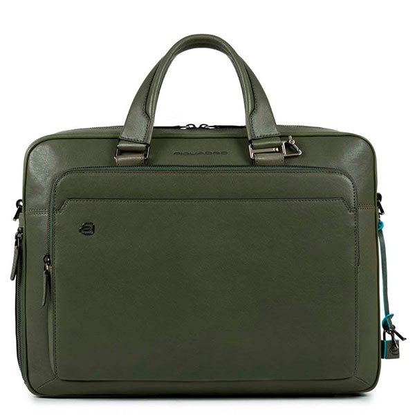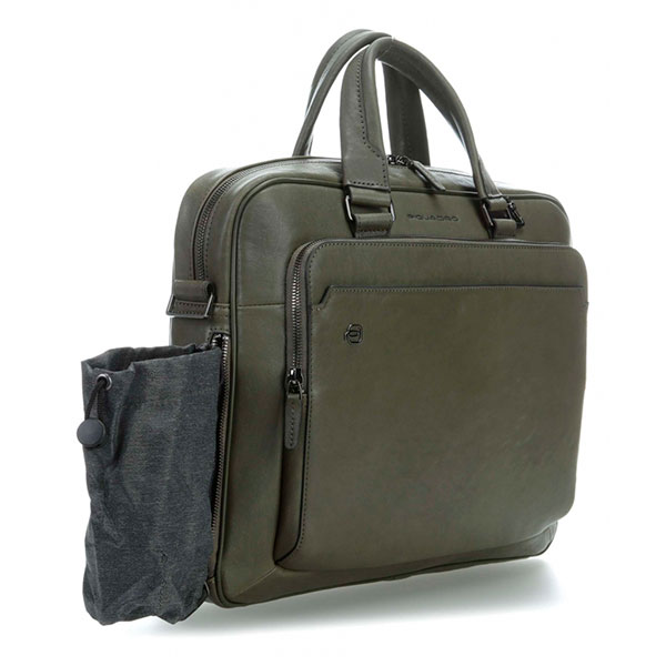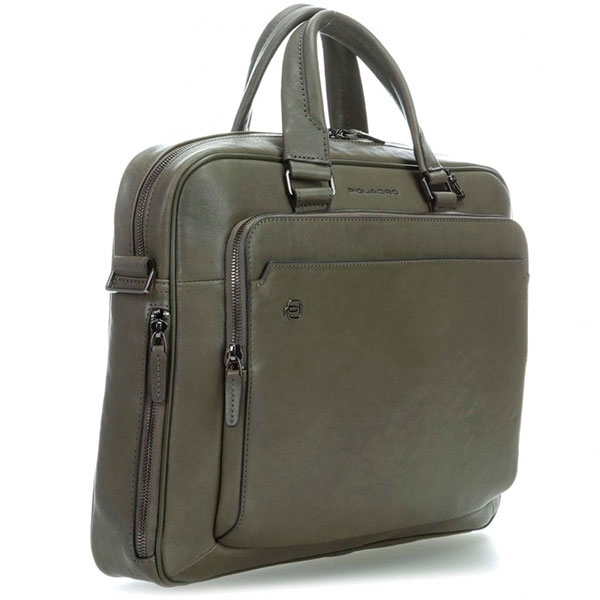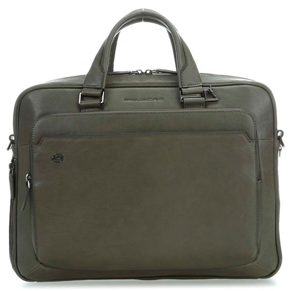 Кожаная мужская сумка со съемным плечевым ремнем из новой коллекции Piquadro Black Square. Имеет одно отделение с отсеком под ноутбук и планшет, внутренний карман на молнии и кармашки для письменных принадлежностей, а также внешний карман на молнии и на магнитной кнопке. Выполнена из мелкозернистой телячьей кожи с черненой фурнитурой. Новый цвет 2018 г.