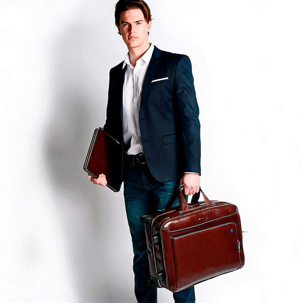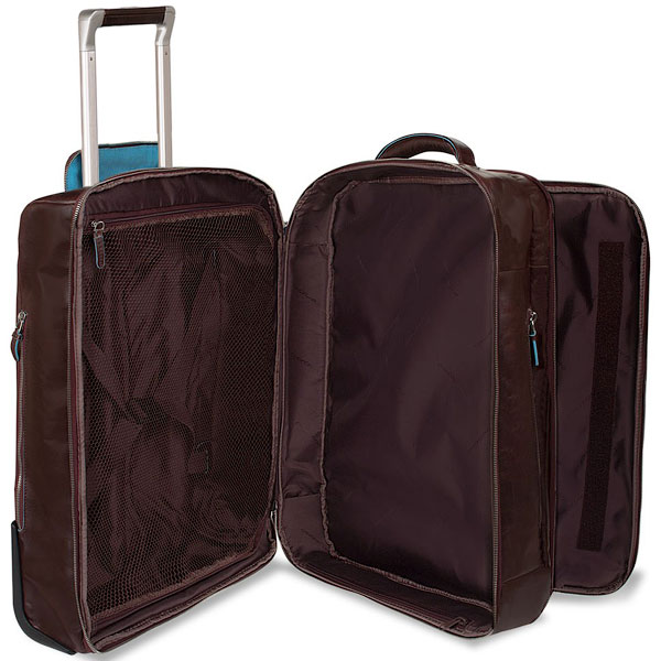 Сумка на колесиках формата «ручная кладь» с отделениями для ноутбука и iPad/iPad Air от компании Piquadro, коллекция Blue Square. Натуральная телячья кожа коричневого цвета.