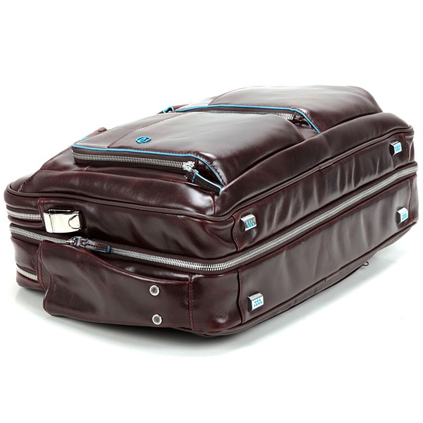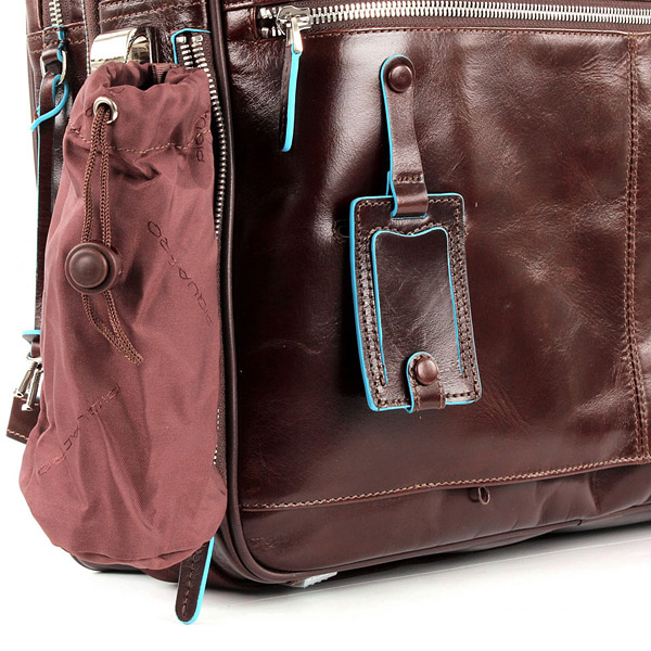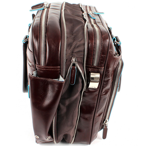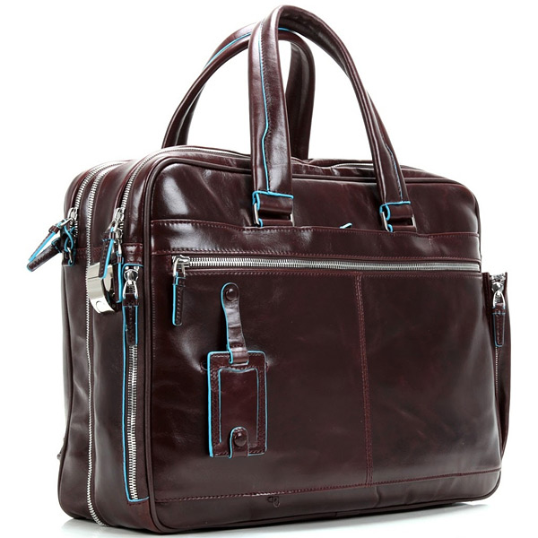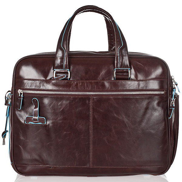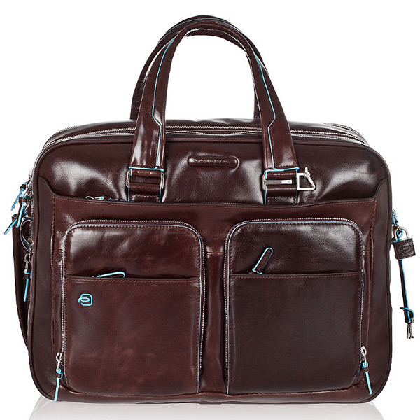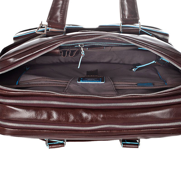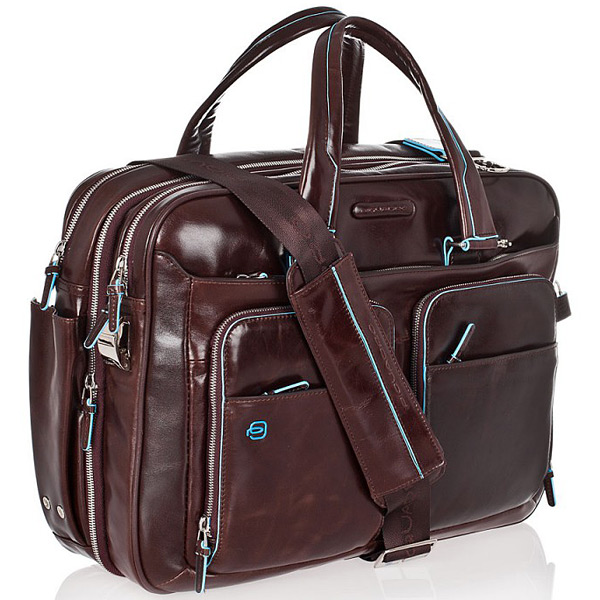 Сумка для ноутбука с возможностью увеличения объема, с отделением для iPad/iPad Air перегородками и карманом для зонтика от компании Piquadro, коллекция Blue Square. Натуральная телячья кожа коричневого цвета.