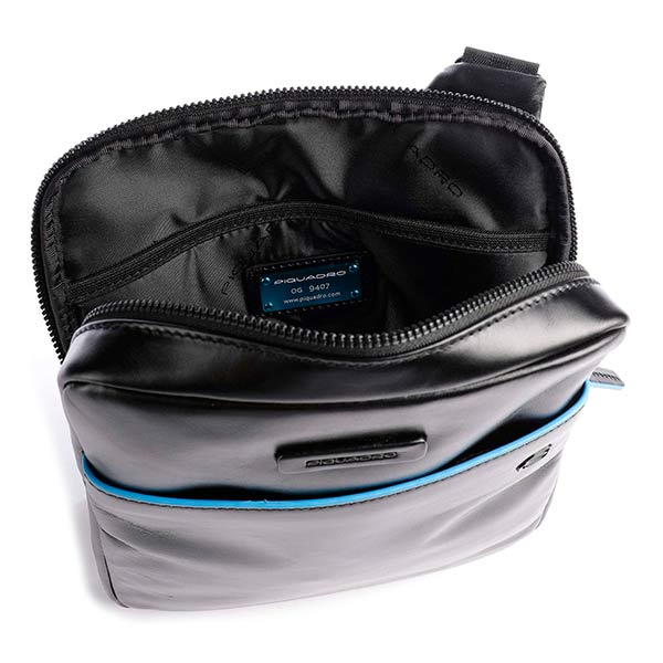 Кожаная сумка синего цвета с плечевым ремнем из коллекции Piquadro Blue Square. Имеет одно отделение..