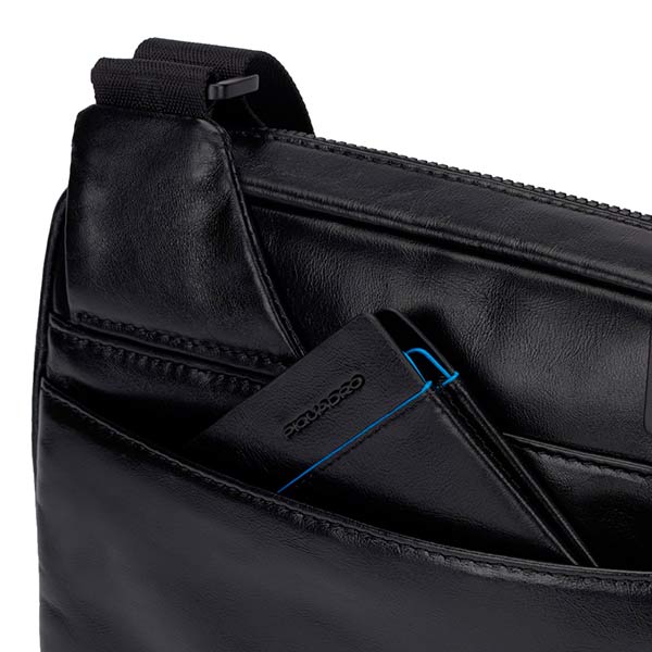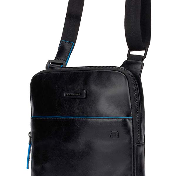 Кожаная сумка черного цвета с плечевым ремнем из коллекции Piquadro Blue Square. Имеет одно отделени..