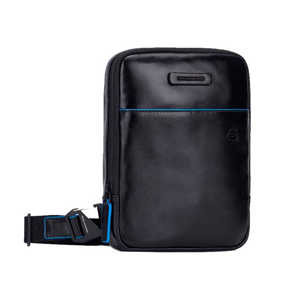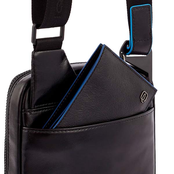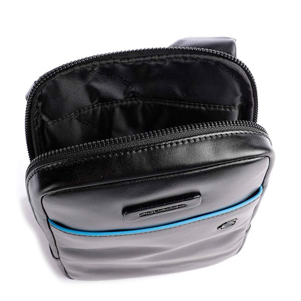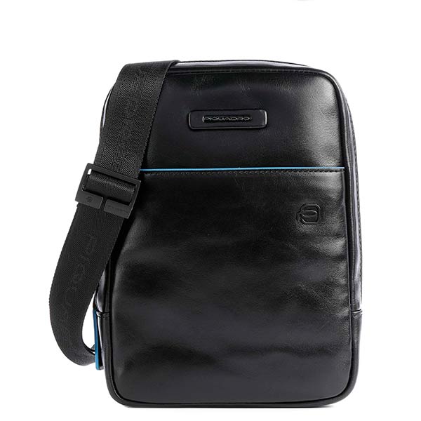 Кожаная сумка синего цвета с плечевым ремнем из коллекции Piquadro Blue Square. Имеет одно отделение..