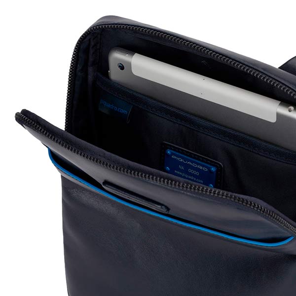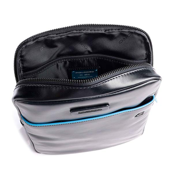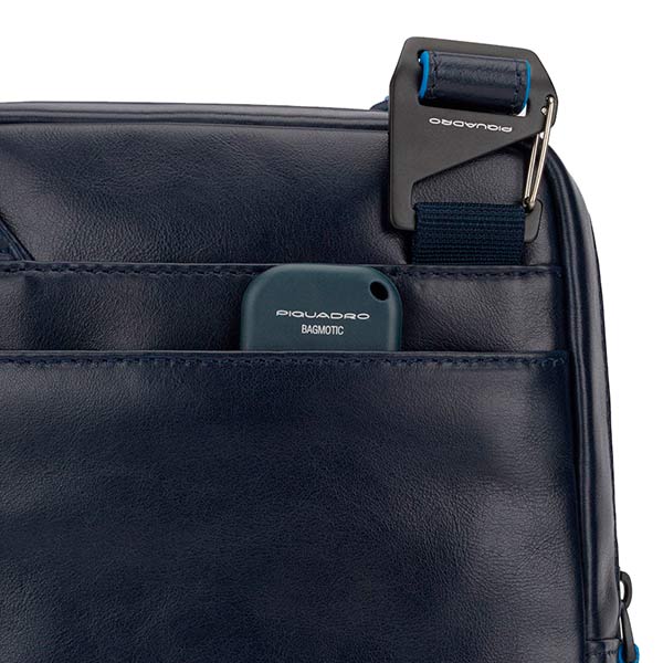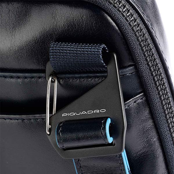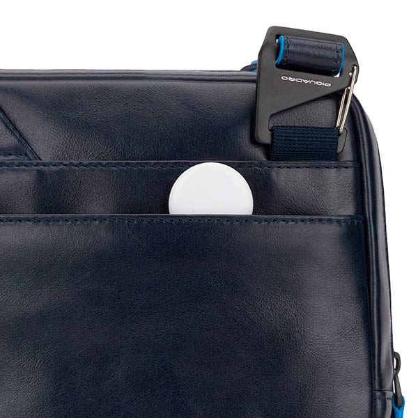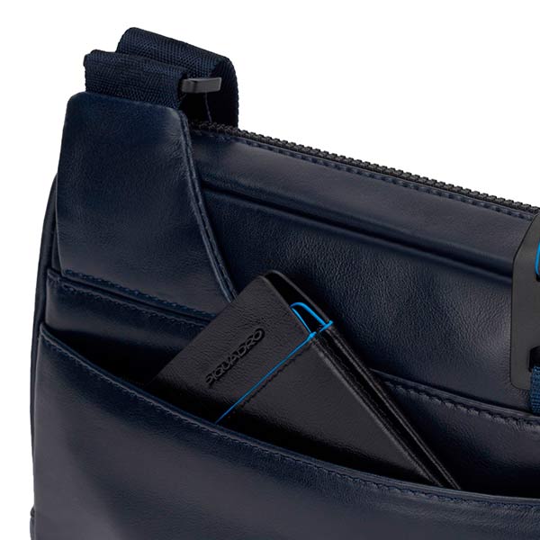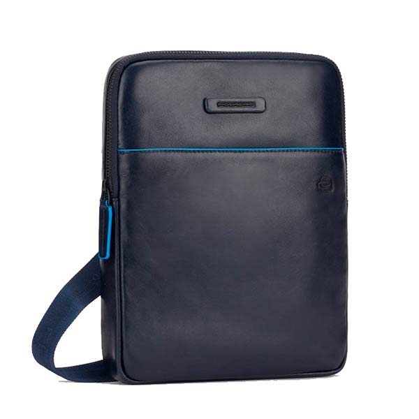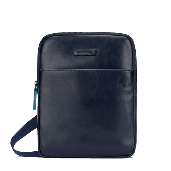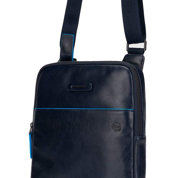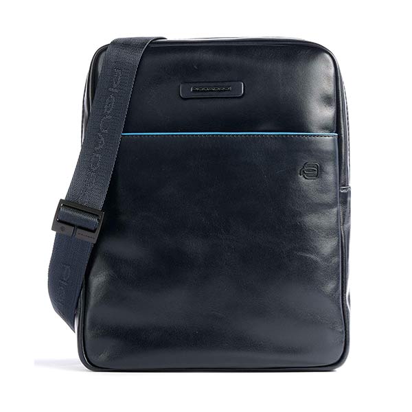 Кожаная сумка синего цвета с плечевым ремнем из коллекции Piquadro Blue Square. Имеет одно отделение..
