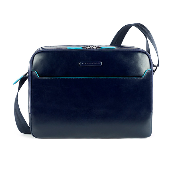 Стильная горизонтальная сумка через плечо из коллекции Piquadro Blue Square. Изготовлена из высококачественной телячьей кожи с фирменным голубым кантом. Сумка имеет два отделение, в одном из которых расположены кармашки для телефона и письменных принадлежностей, а в другом отсек для планшета и карман на молнии.
