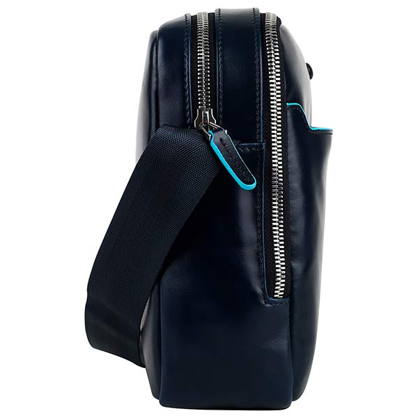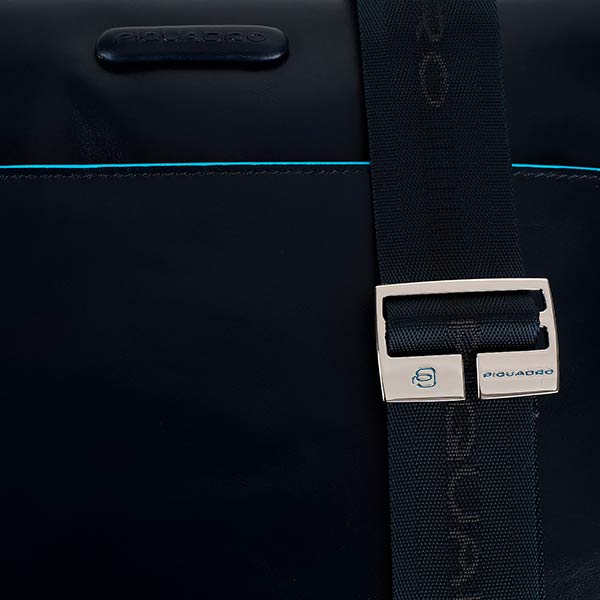 Кожаная сумка синего цвета с плечевым ремнем из коллекции Piquadro Blue Square. Имеет одно отделение..