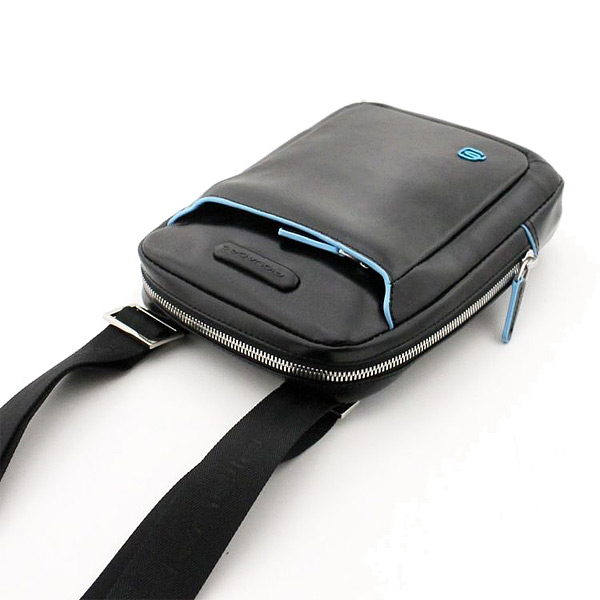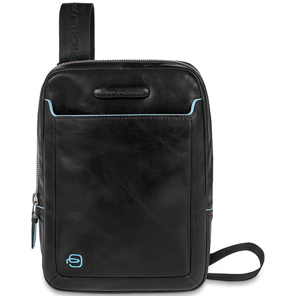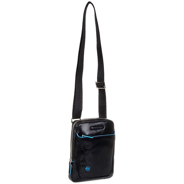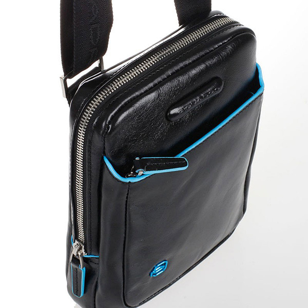 Сумка с перегородками для iPad mini от компании Piquadro, коллекция Blue Square. Натуральная телячья кожа черного цвета.