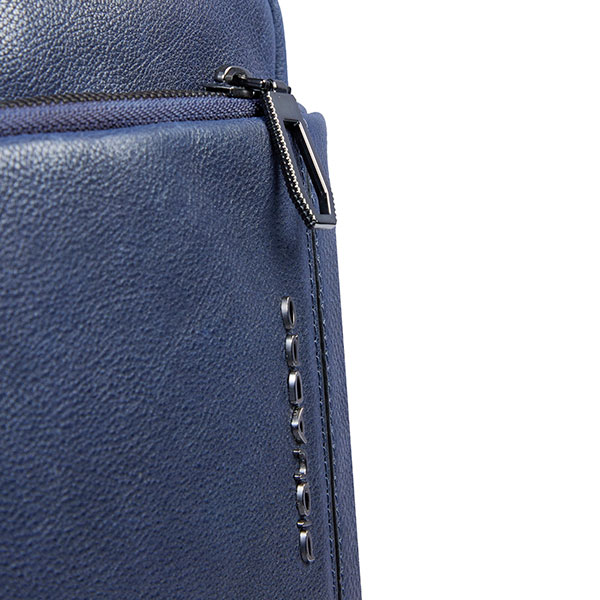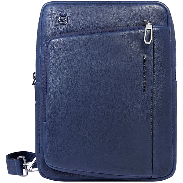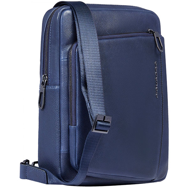 Кожаная сумка синего цвета с плечевым ремнем из коллекции Piquadro Blue Square. Имеет одно отделение..