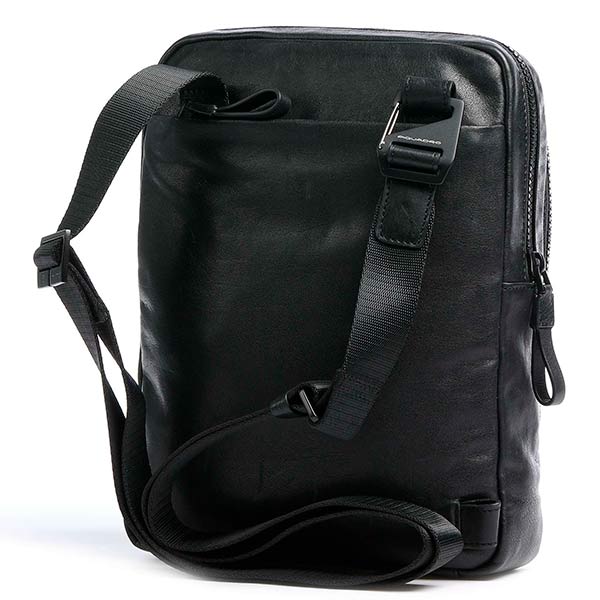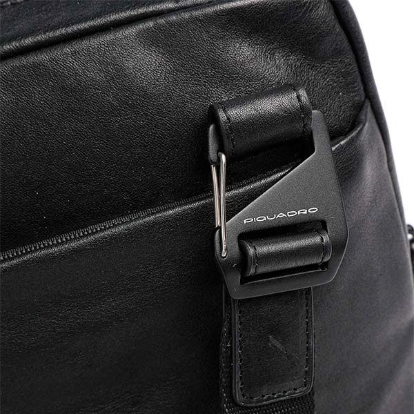 Кожаная сумка черного цвета с плечевым ремнем из коллекции Piquadro Blue Square. Имеет одно отделени..