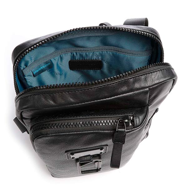 Кожаная сумка синего цвета с плечевым ремнем из коллекции Piquadro Blue Square. Имеет одно отделение..