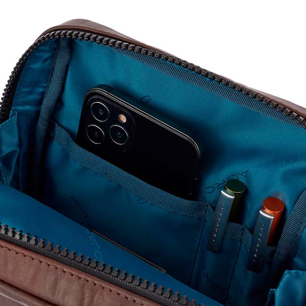 Кожаная сумка синего цвета с плечевым ремнем из коллекции Piquadro Blue Square. Имеет одно отделение..