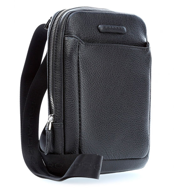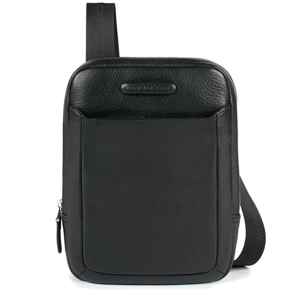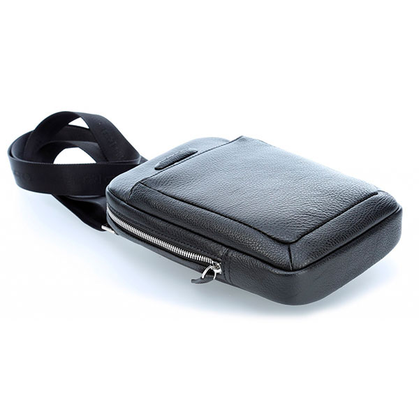 Кожаная сумка черного цвета с плечевым ремнем из коллекции Piquadro Blue Square. Имеет одно отделени..