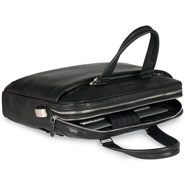 Сумка для ноутбука с отделением для iPad Air/Air2 и iPad mini, с двумя ручками от компании Piquadro, коллекция Modus. Натуральная телячья кожа черного цвета.