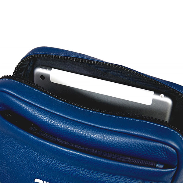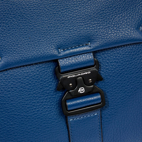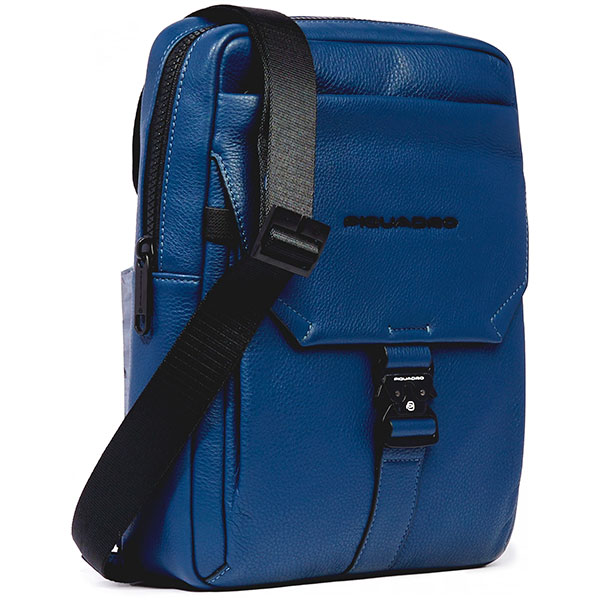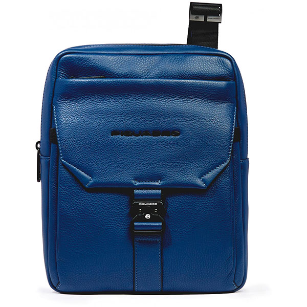 Кожаная сумка синего цвета с плечевым ремнем из коллекции Piquadro Blue Square. Имеет одно отделение..
