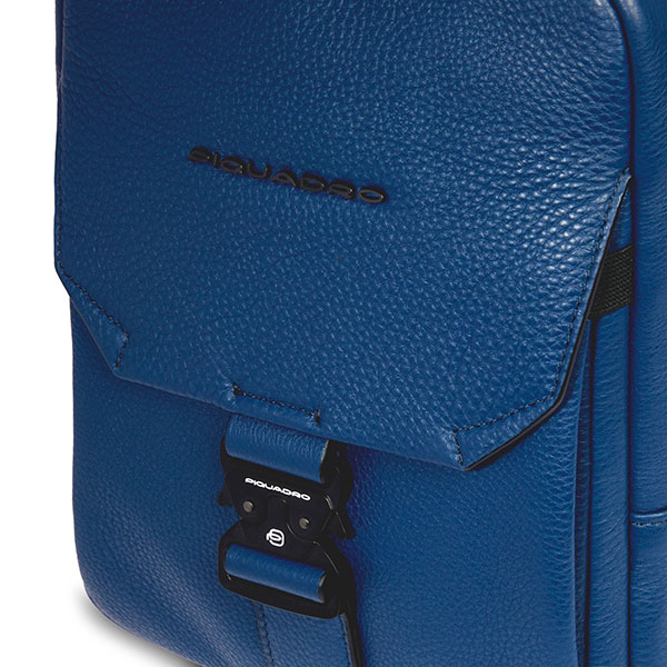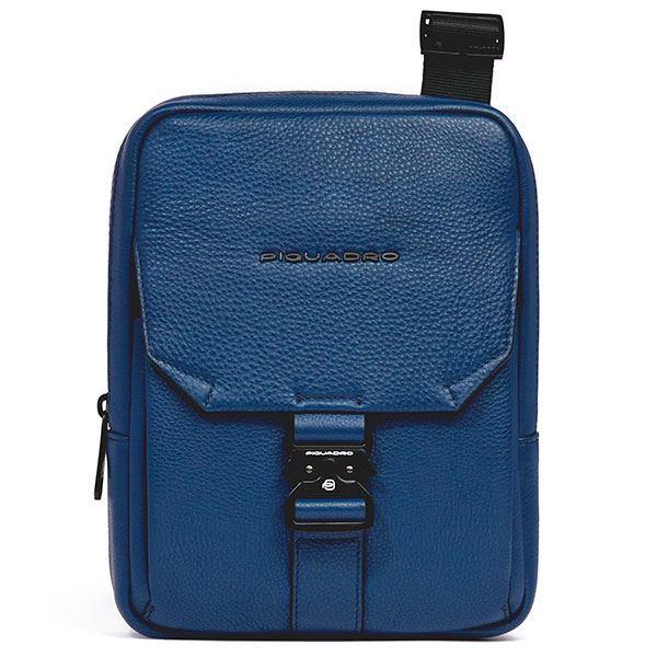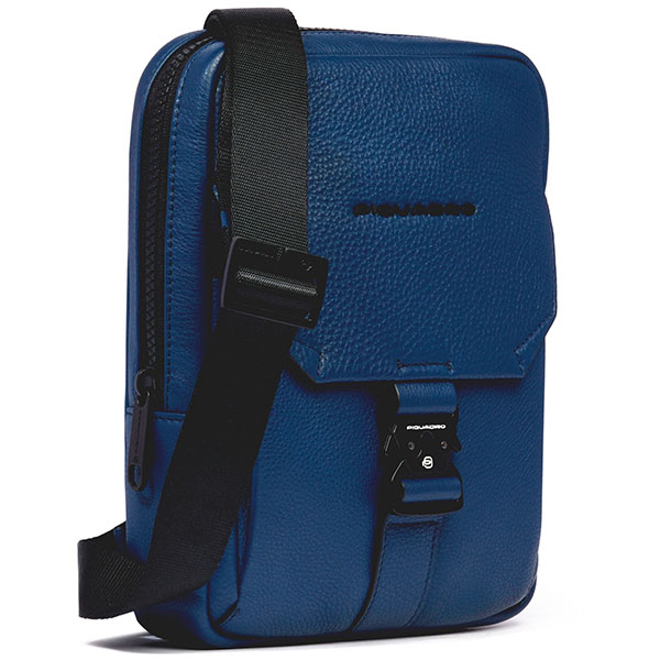Кожаная сумка синего цвета с плечевым ремнем из коллекции Piquadro Blue Square. Имеет одно отделение..