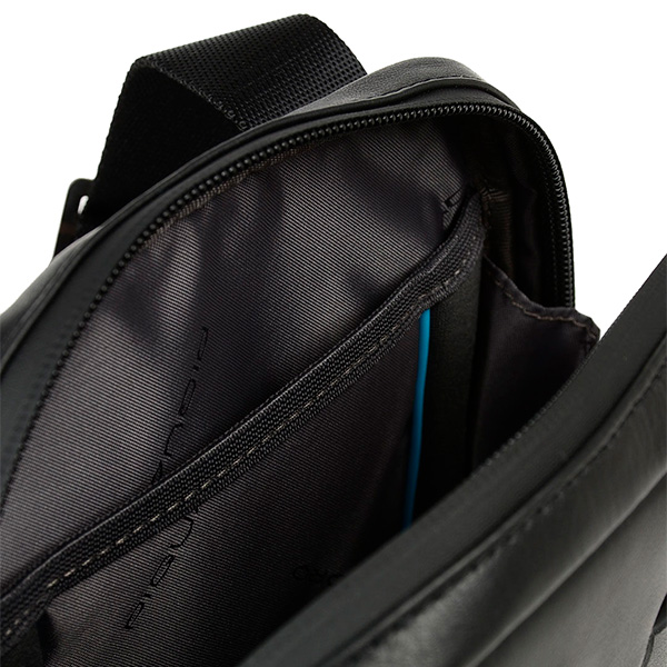 Компактная кожаная сумка через плечо из новой коллекции Piquadro Urban. Сумка изготовлена из гладкой телячьей кожи с использованием черненой матовой фурнитуры. Имеет одно отделение с карманом для iPad mini. На передней части расположен вертикальный карман на молнии и крепление для наушников. Это одна из самых популярных моделей сумок через плечо, оптимальные размеры сумки с удобством позволяют использовать её каждый день для переноски ключей, кошелька, водительских прав и прочих важных вещей.