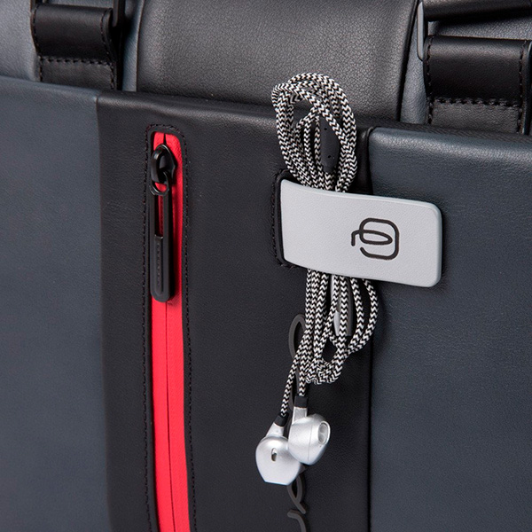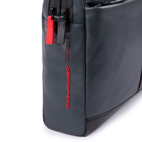 Кожаная мужская сумка для ноутбука и документов из новой коллекции Piquadro Urban. Сумка изготовлена из гладкой телячьей кожи с использованием черненой фурнитуры. Имеет два отделения, в одном из которых находятся отсеки для 15.6 дюймового ноутбука и планшета, второе отделение прекрасно подойдет для документов формата А4. На передней части расположен большой карман на молнии с отделениями для телефона и ручек. Сумка комплектуется съемным плечевым ремнем.