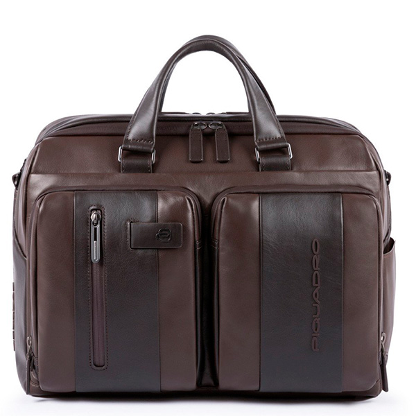 Большая кожаная мужская сумка из новой коллекции Piquadro Urban. Сумка изготовлена из гладкой телячьей кожи с использованием черненой фурнитуры. Имеет два отделения, в одном из которых находятся отсеки для 15.6 дюймового ноутбука и планшета а также кармашки для письменных принадлежностей и телефона, второе отделение прекрасно подойдет для документов формата А4. На передней части расположены два средних кармана на молнии, сбоку карман для бутылки. Молния по середине позволяет увеличить объем сумки в случае необходимости. Сумка комплектуется съемным плечевым ремнем.