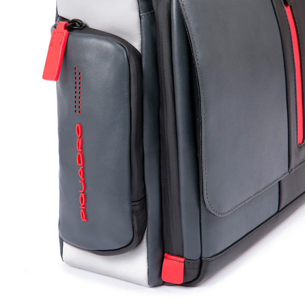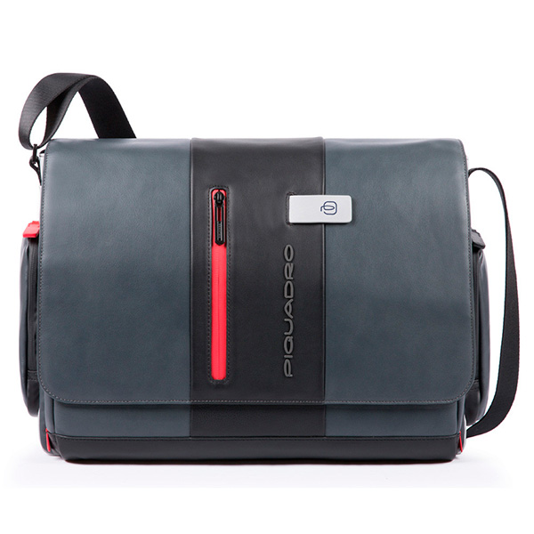 Кожаная мужская сумка-почтальон через плечо из новой коллекции Piquadro Urban. Сумка изготовлена из гладкой телячьей кожи с использованием черненой матовой фурнитуры. Имеет одно отделение с отсеком для 14 дюймового ноутбука и планшета, а также документов формата А4. Также спереди находится большой карман на молнии с отделениями для телефона и письменных принадлежностей. На задней стенке предусмотрена планка для ручки чемодана. По бокам расположены карманы на молнии с логотипом Piquadro.