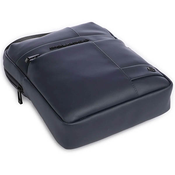 Кожаная сумка синего цвета с плечевым ремнем из коллекции Piquadro Blue Square. Имеет одно отделение..