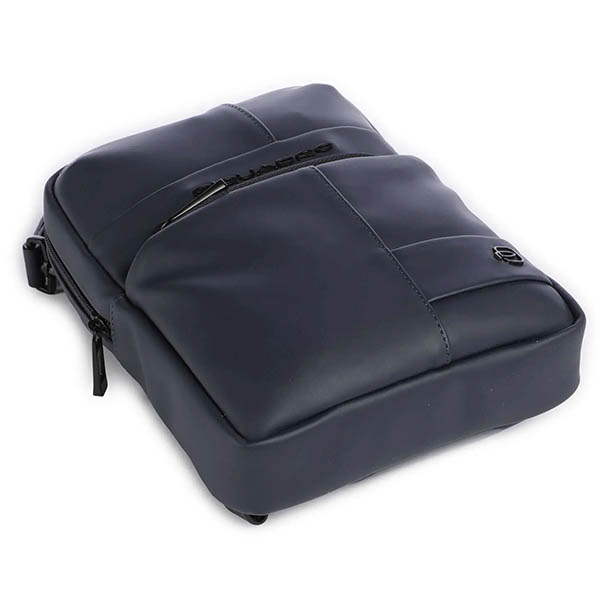 Кожаная сумка синего цвета с плечевым ремнем из коллекции Piquadro Blue Square. Имеет одно отделение..